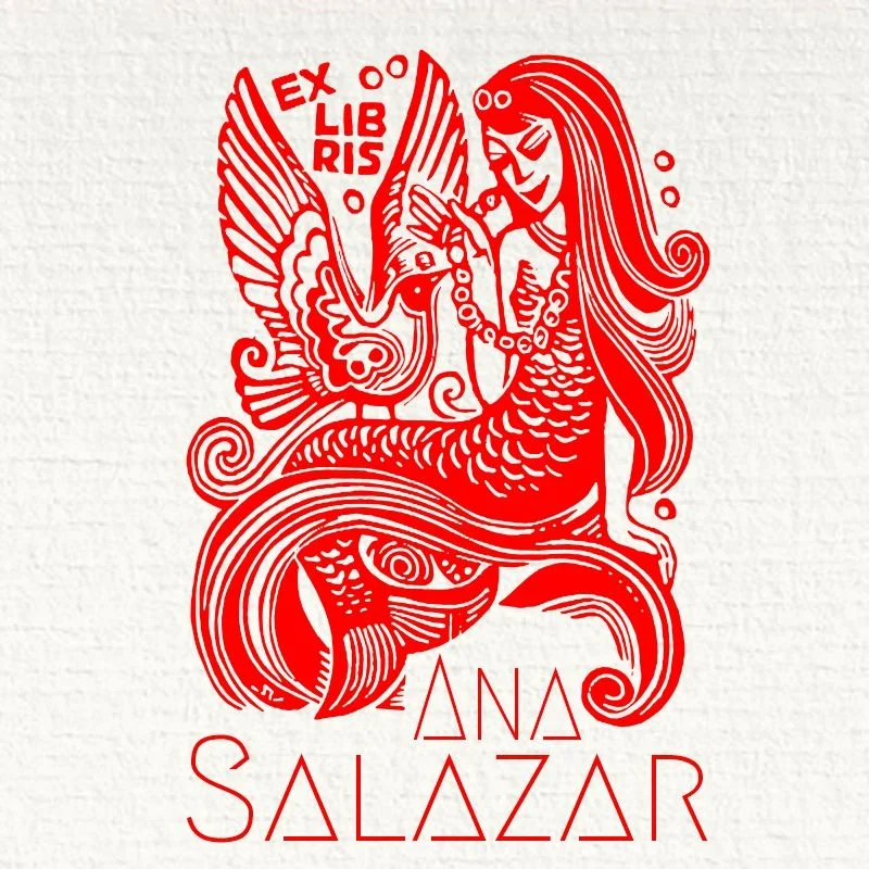 Sigillo Ex Libris Sirena con uccello.